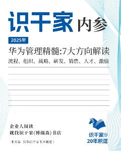 在中国销售额和利润比华为高的企业有一批,为什么很多企业家管理者都在研究华为、学习华为?华为基本法里有一句话:资源早晚会枯竭,唯有文化生生不息……学华为可以从不同层面、角度展开,就像爬一座⛰️,可以走不同的路或先后顺序,研发型企业可以先关注IPD,销售与服务型企业可以先做好LTC,稍有规模的企业可以借鉴BLM……各类企业都可以从华为的管理理念中受益:以客户为中心、端到端思维、流程型组织,集成化……本期识干家内参综合了此前多场直播精华,为识干家会员专享。