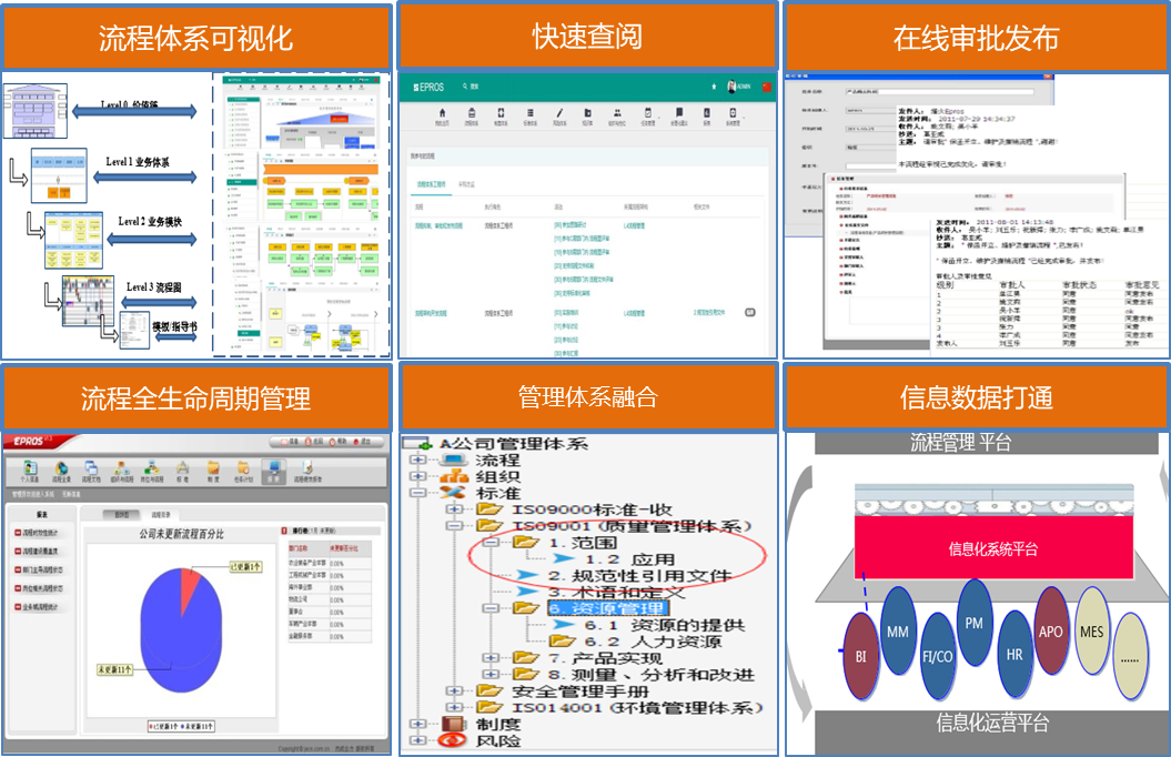 一个公司一般会有多种管理体系,如ISO管理体系、安全环境管理体系等,这些管理体系一般会比流程管理体系先导入,而流程则会伴随着业务嵌入这些管理体系的内容,这就要求我们必须将流程管理同公司的各种管理体系进行融合。