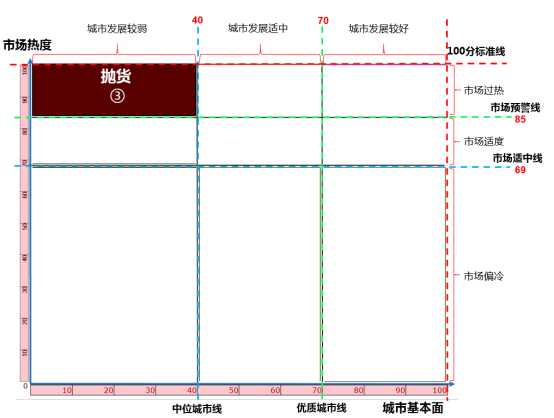 九宫格一至三区均处在城市发展较弱区,根据市场热度从低到高重新定义九宫格一至三区策略。