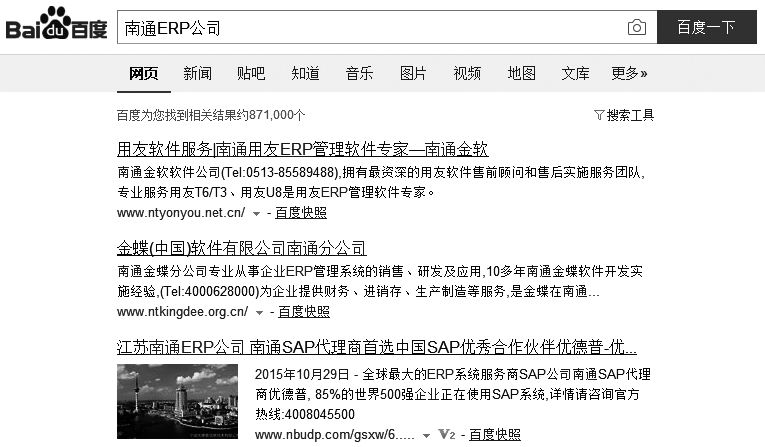 图4-16 在百度搜索“南通ERP公司”的结果