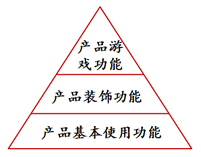 从上面的图中,我们不难发现最底层是产品最基本的使用功能,是产品存在的目的,最高层是游戏功能,中间层给消费者带来的是身份象征。