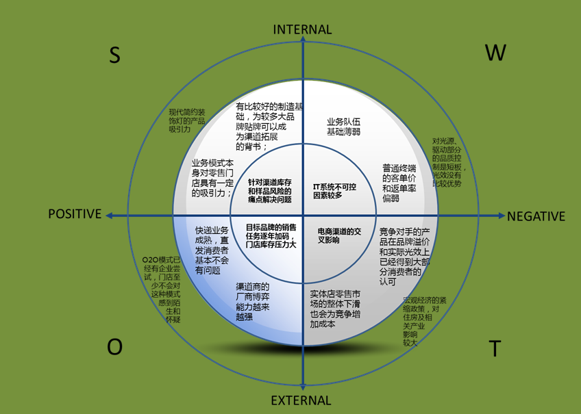 对于第一类错误相对好解决,计划设计者在使用时只要牢牢记住,优势与劣势都要针对自身问题而展开,是主观行为的结果;机会与威胁是外部环境带来的,为客观条件所限制。最后形成利好消息(优势与机会)与利坏消息(劣势与威胁)。