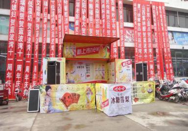 在市场铺货的基础上,豫北市场从4月份开始,每月分配专项的陈列费用针对冰糖雪梨开展市场陈列,陈列形式包括零瓶、专架、堆箱割箱及冰冻陈列等,特别是5~6月份,豫北市场重点组织的冰冻陈列和倒冰柜大行动效果显著,有力地加速了产品的终端消化。通过坚持不懈的陈列和广宣生动化布置,很好地营造了产品的市场销售氛围,提升了经销商、终端商的销售信心和积极性。