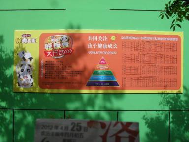 如在幼儿园,投放形式以幼儿园门头、身高标尺、视力表、食谱表、公告栏、评优栏、文明标语牌等为主(如图3-2所示),活动期间,80%的幼儿园均安装了锌爽歪歪各类型的生动化形象,确保产品形象长时间保留在家长、孩子易看到的地方,持续刺激并强化消费者记忆。