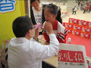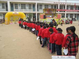 4月20日,新乡小分队与河南电视台都市频道一同走入原阳县官厂乡柳园村娃哈哈希望小学,开展公益体检捐赠活动,如图3-6所示。活动主旨在于结合医院烘托娃哈哈公司献爱心这一特点,从侧面推广新品锌爽歪歪,利用媒体为锌爽歪歪宣传造势。