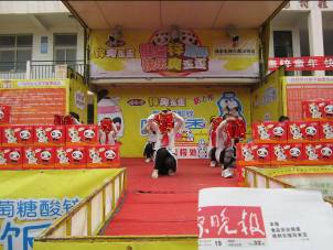 本次活动新乡拓展队与新航幼儿园完美结合,整场节目达13个之多,新航幼儿园经过一个月的精心排练,相对于以往牵头艺术学校进行的演出,演出内容更精致,演出档次及阵容更高。在活动现场由我们提供的卷膜围成的隔离带,将家长与学生隔离开,家长第一眼看到的就是由帐篷、卷膜组成的800米“城墙”。整个舞台背景都是以锌爽歪歪的黄色基调为主,突出锌爽歪歪小熊猫形象,以及吃饭香主题。我们还特别添加了现场颁奖环节,让现场的家长朋友了解到娃哈哈集团对于此次活动的大力支持,小朋友们现场喝的也是由我们提供的锌爽歪歪等相应赠饮,突出娃哈哈锌爽歪歪的公益性特点。