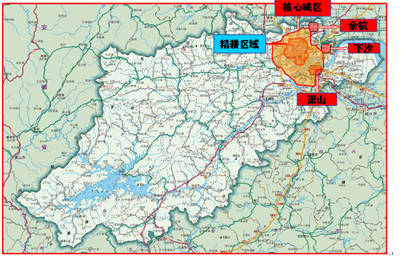 ③ 余杭、下沙与萧山县(县级市)由县城和一些乡镇组成。