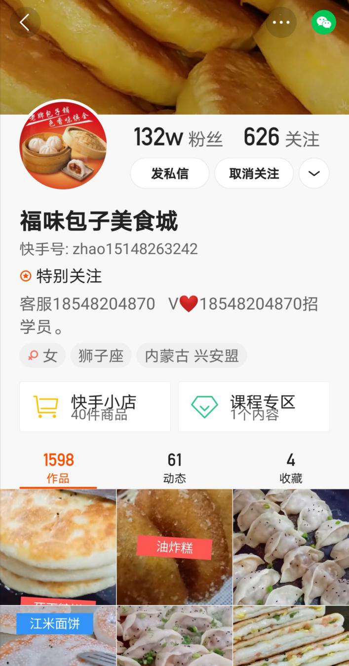看了几个月,大概知道点门道,就开始把自己家卖的包子、馅饼发到快手上。刚开始就是拍个照片、配个音乐,没想到竟然有很多人看,还评论让我发做馅饼、做包子的过程视频。没想到两个月竟然有了3000多个粉丝关注,这很让我惊喜。