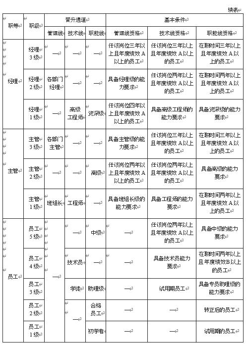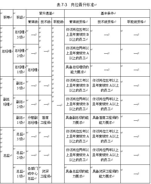 (2) 三个晋升通道:分别是指管理线、技术性和职能线三个晋升通道。