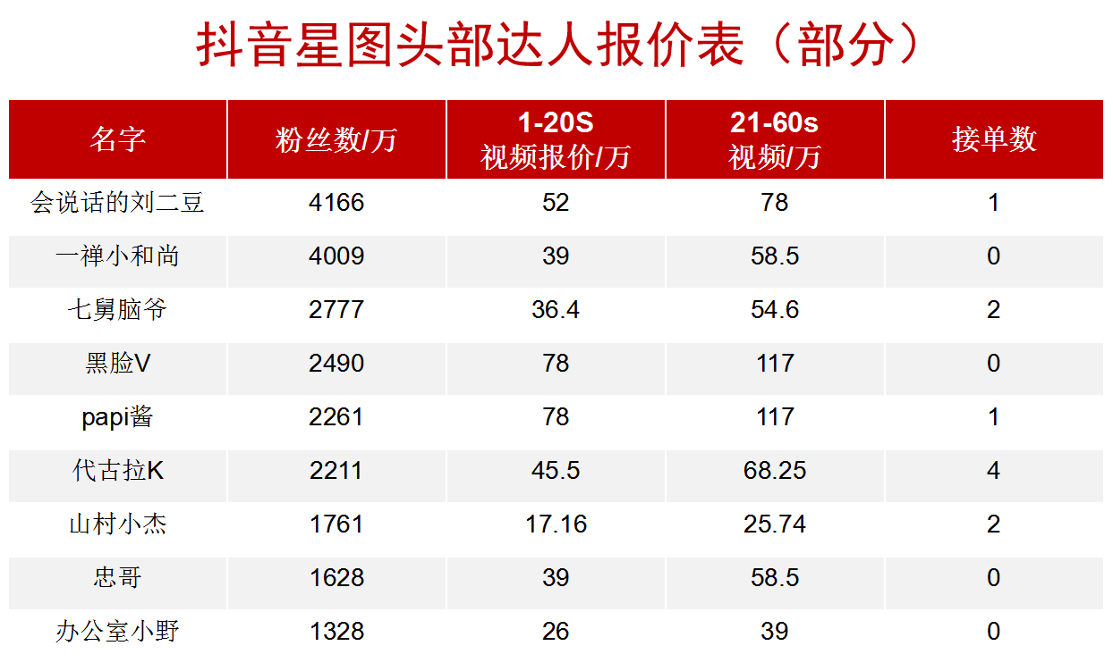 抖音星图(图7-11)仅是抖音官方的接单平台,网红还可以通过签约的MCN(经纪公司)接单。像代古拉K到目前的145个视频中,就有将近10个广告,。如果按照报价单里一个广告50万元左右的报价,那这个IP已经赚了500万元左右了。