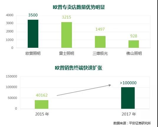 一是在发展线上渠道时,有大量专卖店做支撑,欧普照明为消费者提供了服务保障。