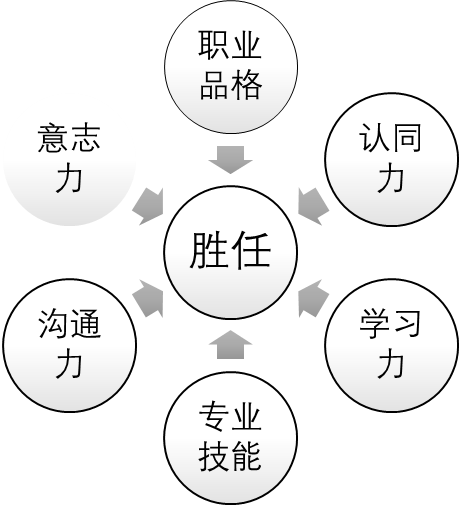 于是,我们得出了一个5(职业品格、认同力、学习力、沟通力、意志力)+X(专业技能)的人才招聘、甄选模型。,如图7-1所示。