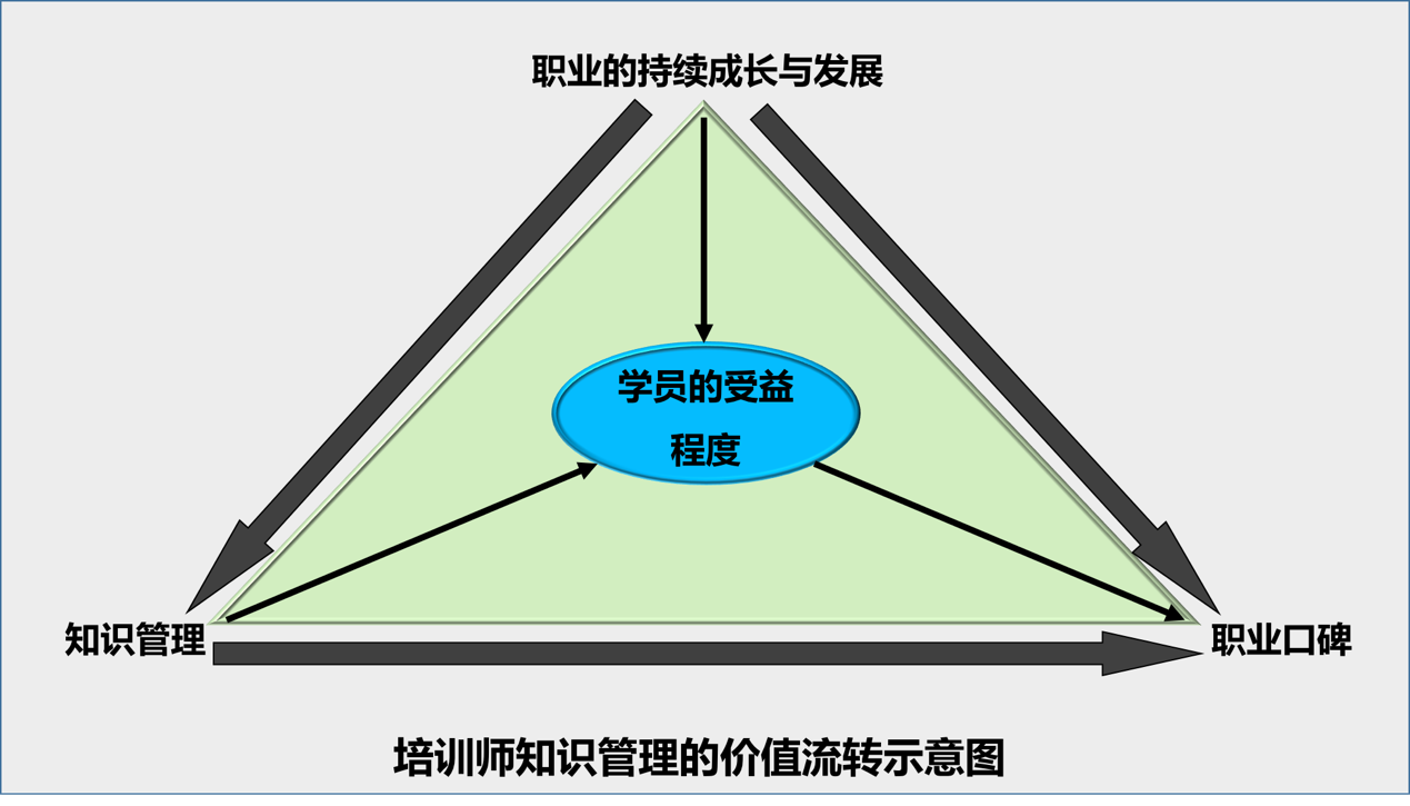 培训师的知识积累,最终会影响到自身的职业成长与发展,而职业的不断成长与发展又会促进培训师积累更多的知识。