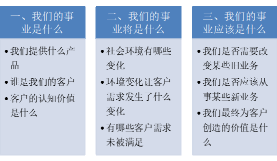 我们的事业是什么,是站在当下看企业的使命,其中要梳理三个问题: