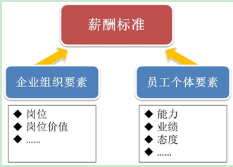 影响员工薪酬标准确定的要素包括两类:企业组织要素和员工个体要素。其中,企业组织要素主要是员工岗位和岗位的价值等因素。员工个体要素则是员工的个人能力、态度、业绩等有关要素。如图3-1所示。