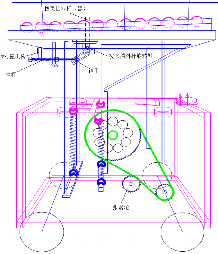 对撞装置通过巧妙的机械结构设计,实现物料的有序滑动。当撞杆触发动作,与装置其他部件相互配合,带动薄叉及旋转轴协同运作,促使物料顺利滑下;再次触发撞杆,装置又能以特定的运动逻辑,让物料从另一侧滑落。整个过程无需复杂的动力系统,仅依靠各部件间精密的结构配合与力学传递,便达成了高效的物料传输功能。