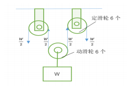 该装置由 6 个定滑轮和 6 个动滑轮组成,通过滑轮组传动实现省力效果: