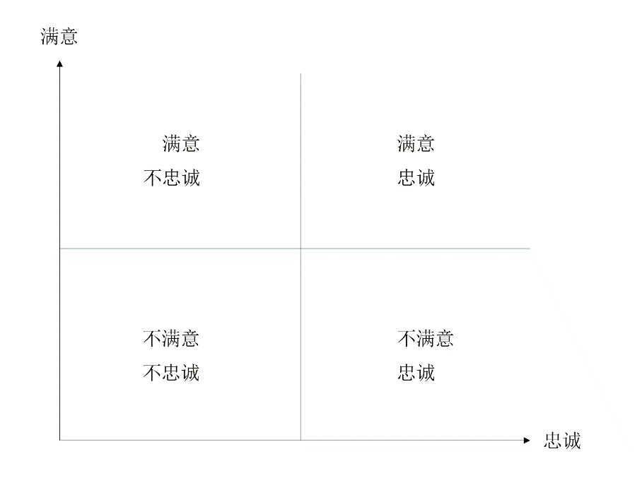 有时并不是客户满意就会忠诚,因为客户需求是多样化的也是个性化的,虽然酒店产品和服务无可挑剔,入住体验也较好,如果下一次预订酒店客户有更好更多的选择且预订了其他酒店,那么客户的行为表现就是不忠诚。