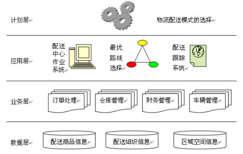 应用层:系统只需要在系统上通过接收订单(内部和外部订单),通过对扫描订单的条码,对订单区域或送货地点的识别,自动根据所设定的规则和逻辑去进行路线的选择与寻找相对应的物流。在整个配送过程中,物流信息的反馈与系统做无线对接,仓储人员或业务员能实时跟踪物品的配送情况并知晓其中的过程。在遇到异常情况时,能第一时间做出反应,与客户沟通或企业内部采取相对应的紧急处理措施,以提高销售应变能力,提高客户满意度。