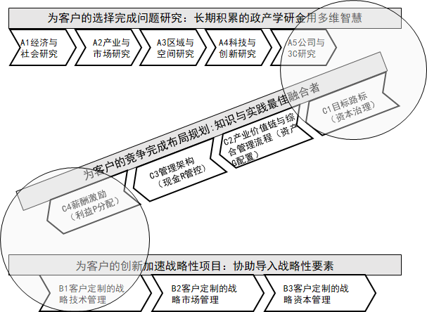 (9)形成了“一体两翼”的业务格局:以咨询业务为体,以资本业务和商学教育为两翼,两两互哺、相生互动。