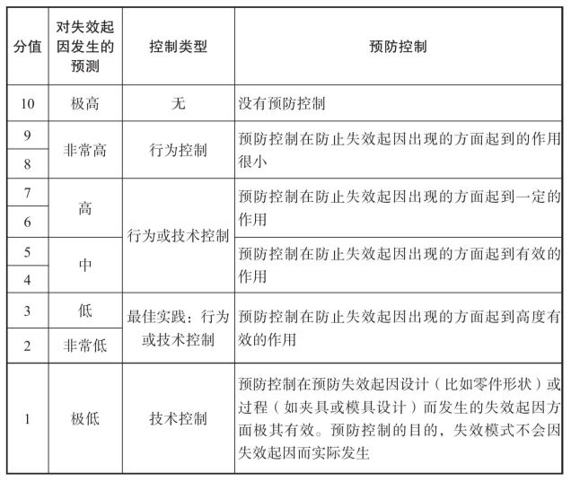 频度是失效模式发生的概率,主要是根据有无预防措施来评分,如果有防呆措施,发生度更低。如表2-7所示。