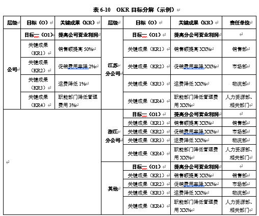 关键成果(KR4) | 职能部门降低管理费用3% | 关键成果(KR4) | 职能部门降低管理费用XX% | 人力资源部、相关部门 | ||