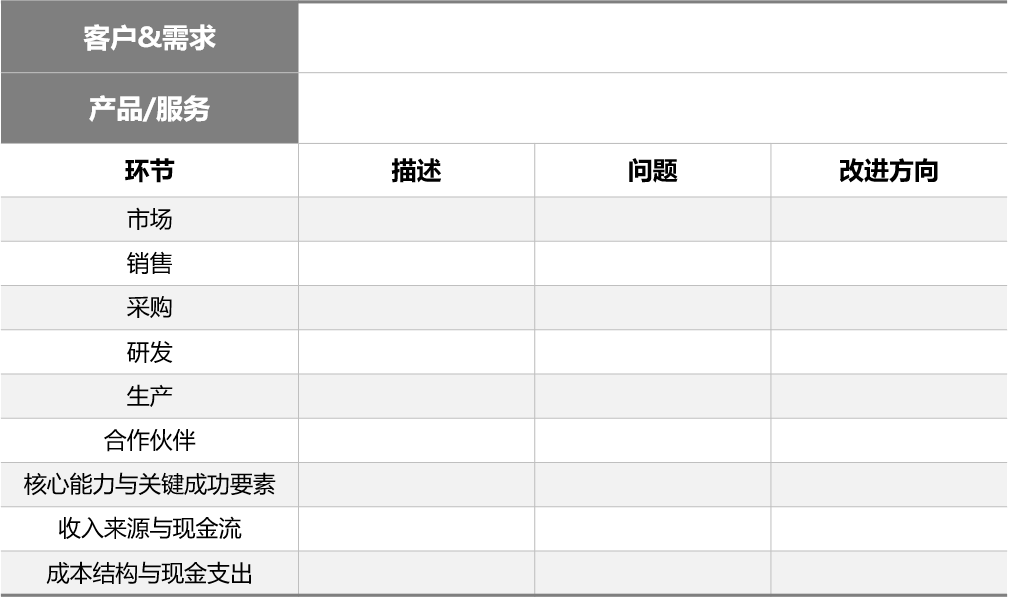 表4-22 商业模式还原表单