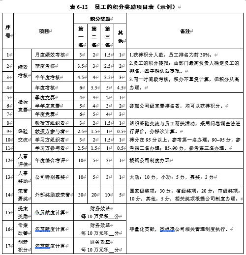 公司从绩效考核、指标竞赛、经验交流、荣誉嘉奖、专案改善等方面设立了员工的积分奖励项目。