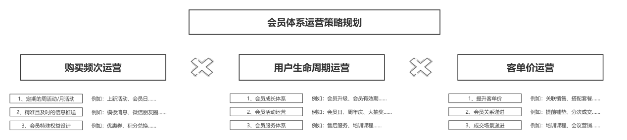 会员体系布局、会员成长体系设计以及会员互动设计,这三个步骤我们可以看成是会员运营在前期就需要规划设计清楚的。但只有这个还不够,我们还需要来规划会员体系的运营策略,也就是要让整个会员运营,能够在后面具体执行的时候可以高效落地。
