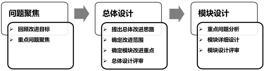 研发体系的解决方案一般涉及多个模块的调整,因此在进行方案设计时,通常会历经一个从总体到局部的细化过程。如图3-1所示。