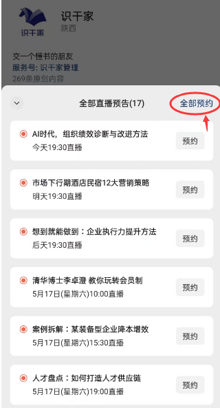 一键预约全部直播