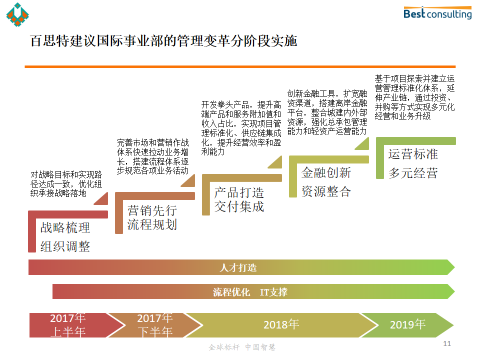 北京城建国际事业部与百思特团队深度讨论后,确定了战略的总体定位:即从施工总承包商转型升级为世界一流的工程总承包商。提出要实现从经营项目向经营公司转变、从项目利润到公司利润转变、从区域拓展向国家转变、从项目运作到产品运作转变,战略性深度布局每一个国家。