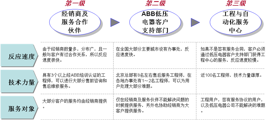 事实上,一些大公司正是需要各个区域经销商协同开展售后服务工作,与经销商建立起“经销商—厂家区域办事处—厂家总部”三级售后服务管理体系。大量的售后服务工作需要分布在区域的经销商承担,因为经销商距离客户近,反应迅速,能够及时处理。经销商不能处理的复杂问题则由厂家承担,保证服务质量。如图7-3所示。