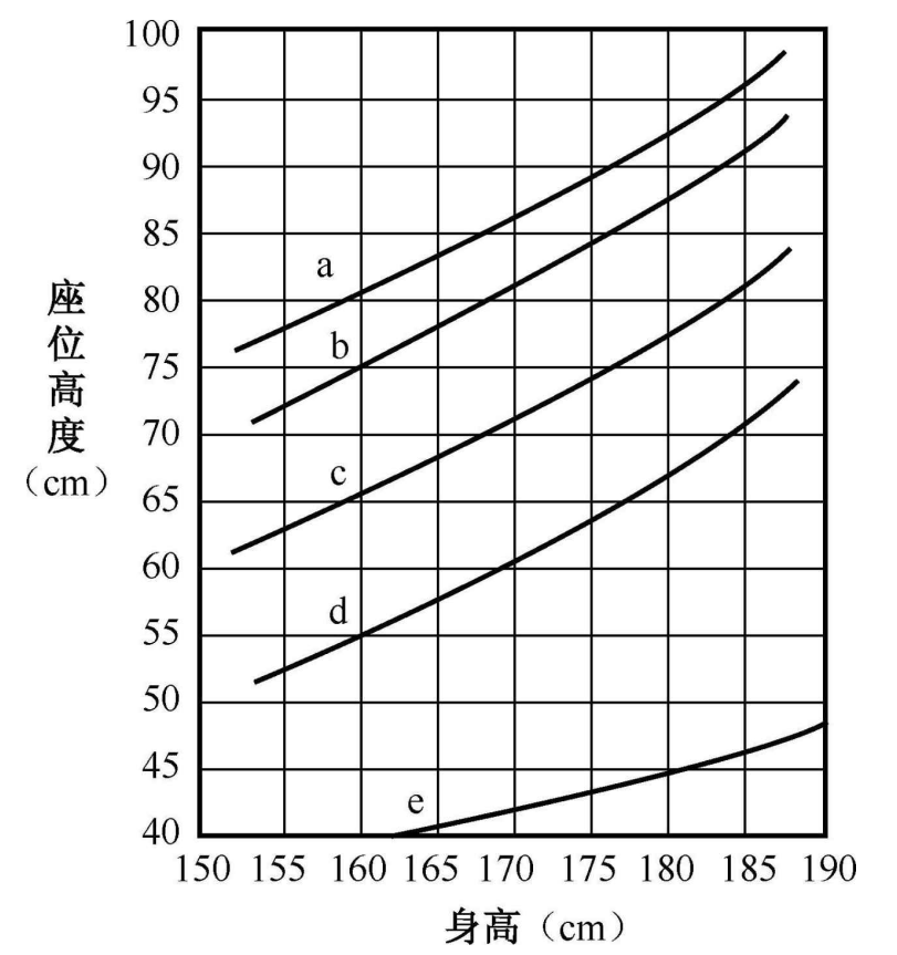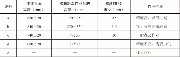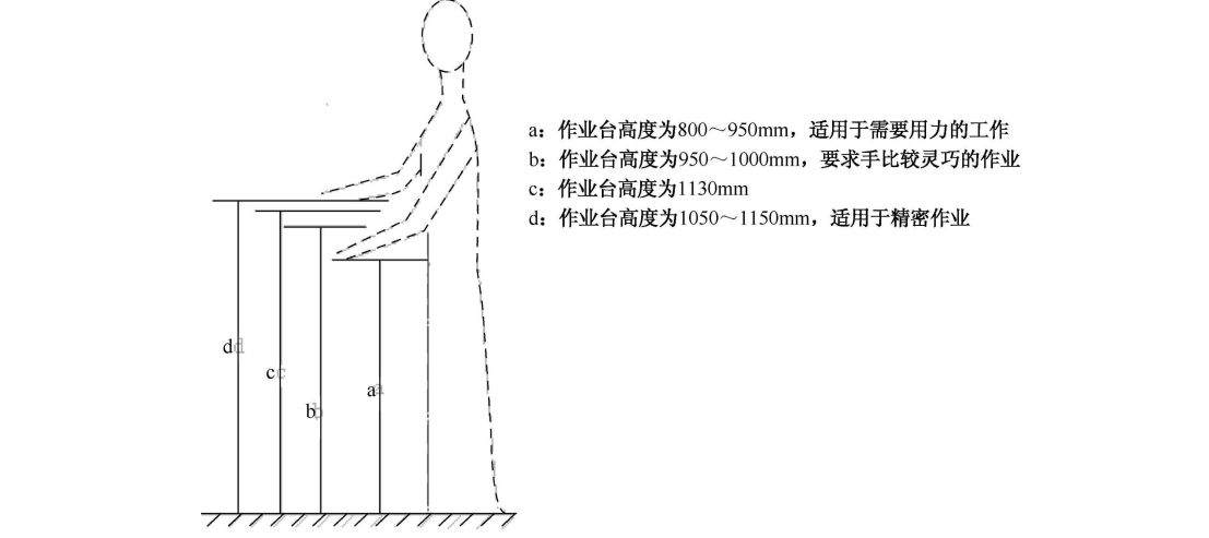 a.工作台的高度。图5-17为工作台和座位高度及人的身高之间的关系。
