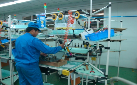 作业台的立体布置要注意充分利用台面的立体空间,除了将工具、物料、零件等放在立体架上,还可以将作业指导书等垂直台面摆放,避免占据作业空间。