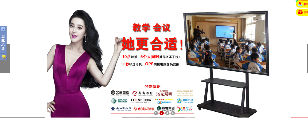 上面我讲了借力明星,你看模特是否有几分相似?(这里不提倡每个人都这样做,因为怕版权问题,所以要这样做必须要懂营销、注意分寸)。这是个广告机的商家轮播图,我们来解析一下文案包含了什么卖点?
