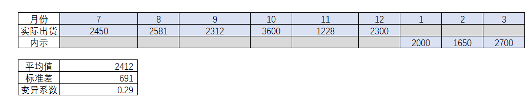 1. 就是预测的不准确性。尽管客户给了未来的3个月(1-3)的预测数据,分别是2000,1650和2700,但是根据历史实际需求和对应内示数据的分析,存在相当程度的误差性。