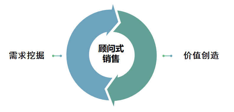 销售在其中起着至关重要的作用,他是公司与客户联系的纽带,也是完成需求与价值循环的催化剂,而能不能做一个“顾问式销售”是这个催化剂是否能起作用的关键。