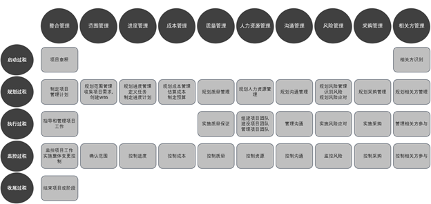 图0-1 项目管理五大过程组十大知识领域