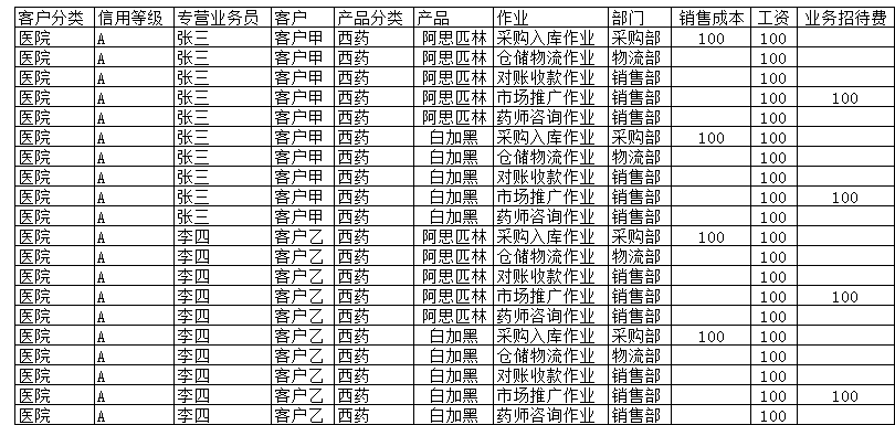 可查询客户与产品、部门、作业的任意组合的成本。