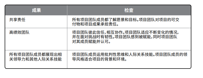 最后马丁指出,一个项目的完成,除了实现项目直接目标的交付,作为项目团队,也应该得到技能的提升和领导力方面的成长。在项目的过程中,需要不断评估和检查是否能够达成这些成果。如表2-13所示。