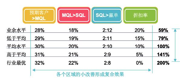 第四点,复合效果。每个阶段的小改善形成复合效果。每年业绩翻番很难,但是如果有7 个业绩增长点,每个点每年提升10%,1.1的七次方,结果就是翻番。换一个角度看,如果把每年增长的100%分到12个月,那么每个月只需要增长8%,也就是7个业务增长点每个月只需要增长1%。如果有专门的人负责这1%,基于他过去的经验就可能会有很多方法和选择。每个月达成这个1%的增长,就是我们有信心帮助客户的数学核心。如图2-19所示。